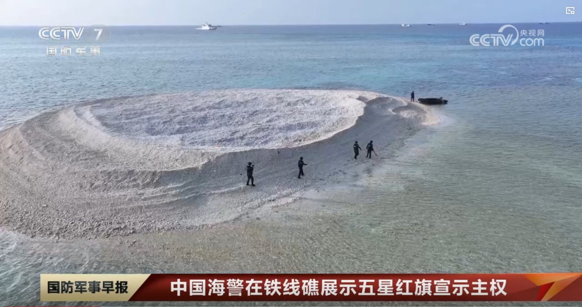 [2] – | [国防军事早报]中国海警在铁线礁展示五星红旗宣示主权 对菲方非法活动的相关情况进行视频取证