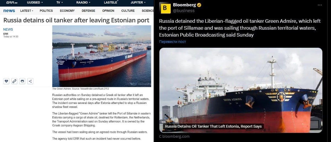 ⚔️ Самолёты НАТО и ВМС Эстонии попытались захватить танкер «теневого флота России»