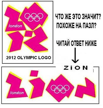 Мы видим откровенно корявый, нервный, изломанный как каракули сумасшедшего, логотип, который многим людям напоминает перекошенную свастику, сложенную из осколков битого стекла. (У некоторых он даже вызывал приступы эпилепсии: «Голосование на сайте за смену логотипа Игр началось сразу после того, как глава оргкомитета Олимпиады лорд Себастьян Коэ обнародовал эмблему. Однако наибольшее количество голосов против логотипа было подано после того, как стало известно, что рекламный видеоролик с эмблемой Игр вызвал приступы эпилепсии из-за частой смены кадров у предрасположенных к этому людей» За смену логотипа Олимпиады-2012 выступили 50 тысяч интернетчиков) Но все становится на свои места, стоит лишь представить эту анаграмму как слово «Sion». Вот так: