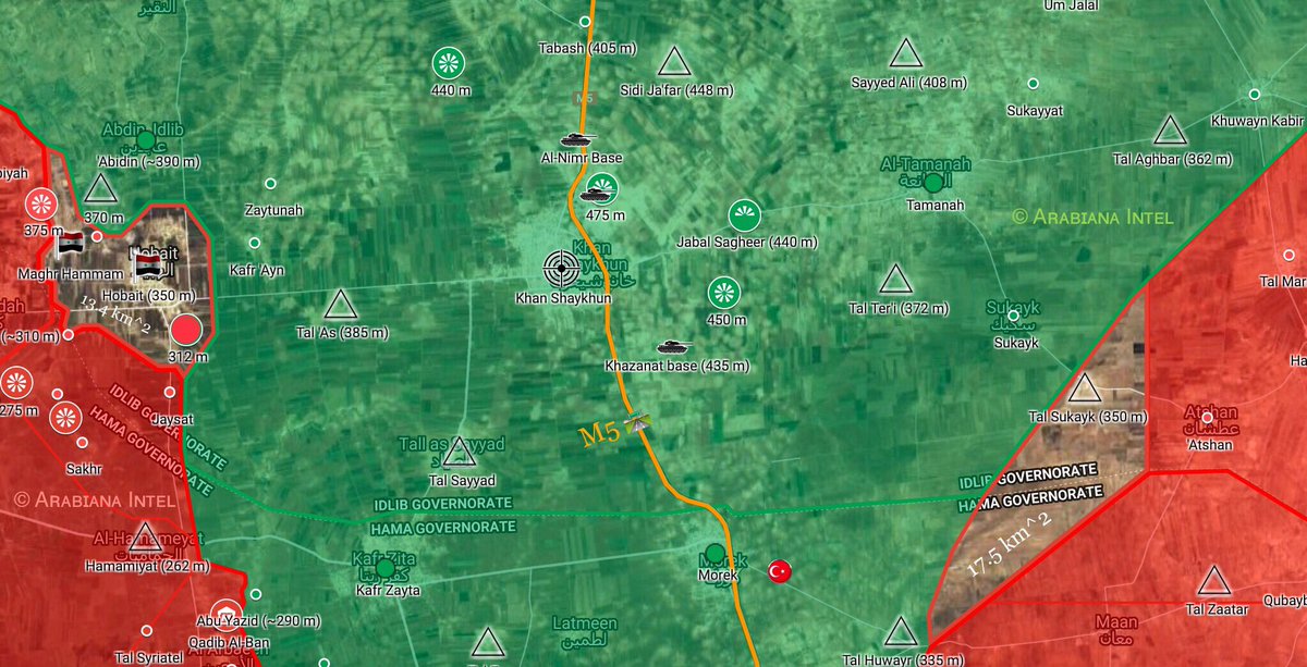 Село Хабит – это не просто небольшая точка в Южном Идлибе – в первую очередь это стратегическая высота, с которой можно рассмотреть печально известный город Ханшейхун невооруженным глазом. Кроме высоты Тель Аин Силы тигра отделяют от ханшейхуна всего лишь восемь киллометров открытого пространства. 11 Июля сирийские подразделения наччала продвигаться с восточной стороны Латаминского выступа. После ожесточенных боев им удалось освободить село Сукайк. Террористы продолжают сопротивляться, но все-таки отходят.